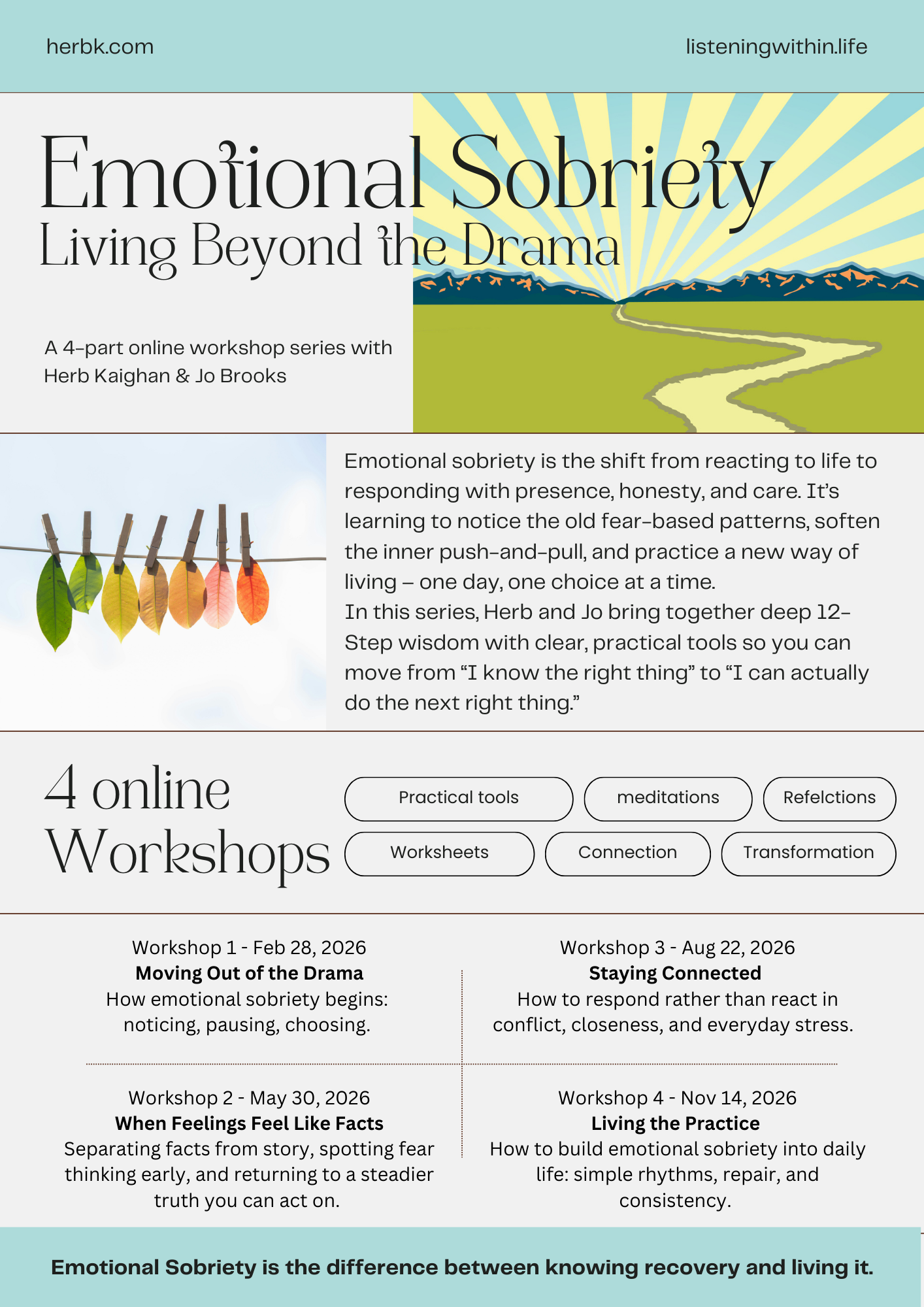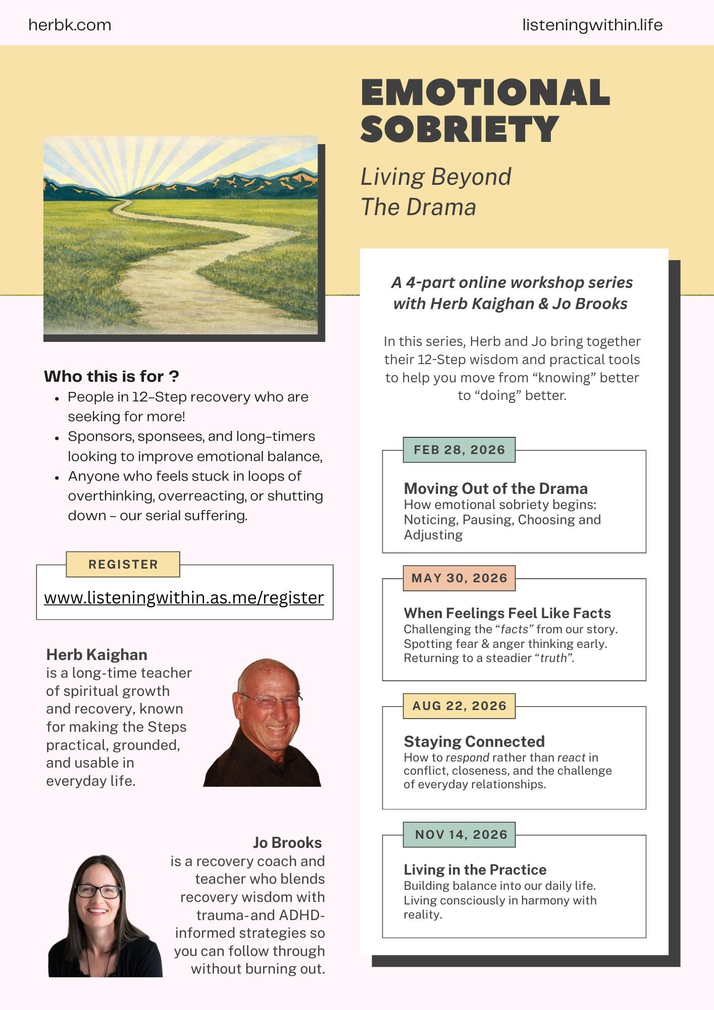 These workshops are offered in support of the June 13–15 in-person retreat with Herb and Jo, held at the Mary & Joseph Retreat Center.
